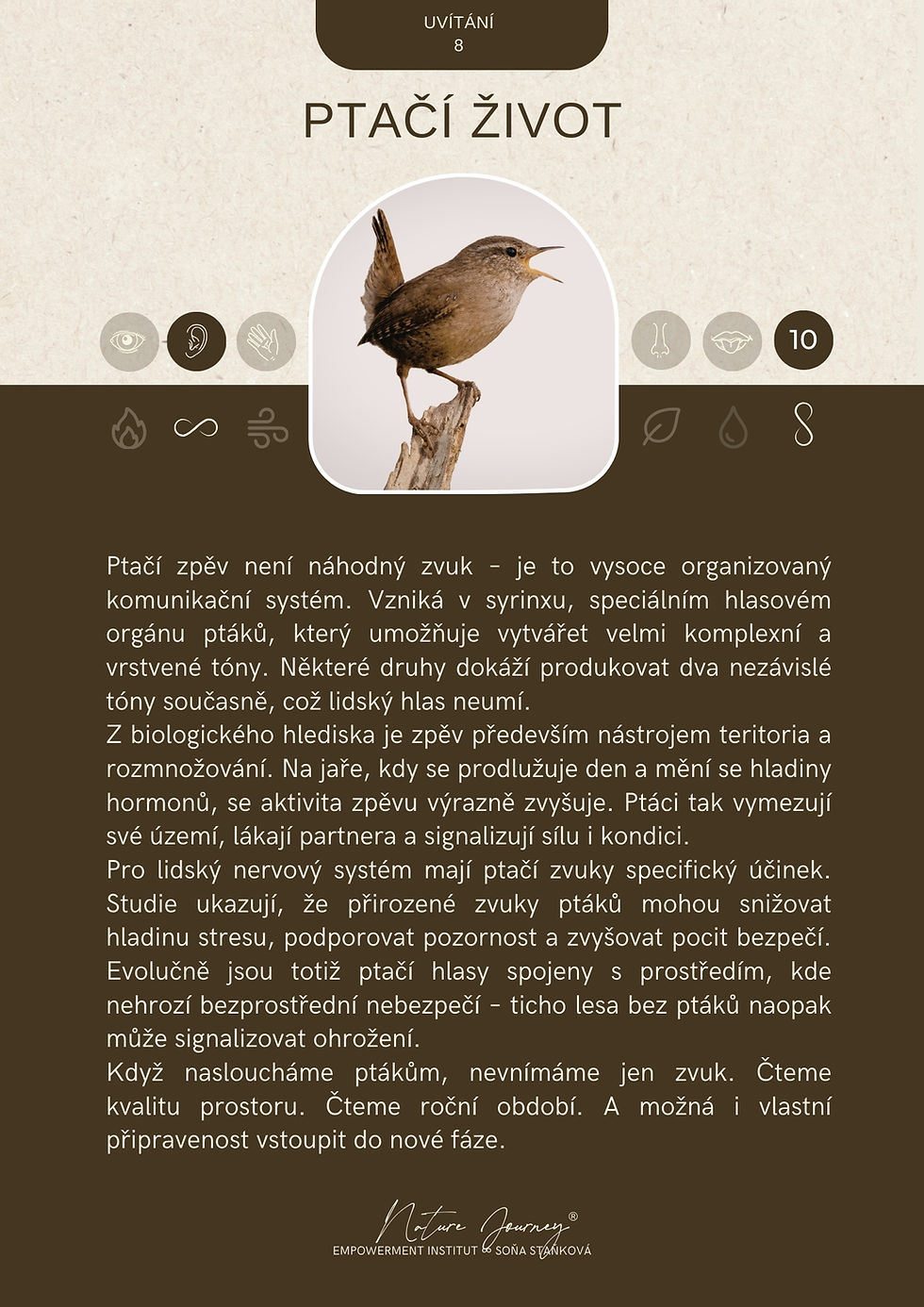 ✨ Výběr 4 smyslových citlivostí dle Dr. Michaela Cohena, které podporují vnímání změn počasí, ročních období, světla i zvuku.✨ Zvířecí kartu se sýkorkou – malým, bdělým tvorem, který ohlašuje změnu dřív, než ji uvidíme.